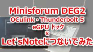 その他PC Minisforum DEG2(eGPU) をLet’sNoteにつないでみた Let'sNoteに外付けGPU(eGPU)はつかえるのか。CF-FV1とCF-QV8にMinisforum DEG2をつないでみました。 2026.02.04 その他PC