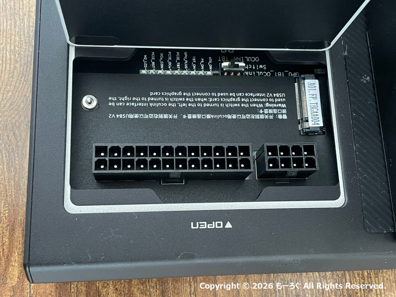Minisforum DEG2ですが、PCIeスロットにグラボをさして、eGPUとして使うだけでなく、SSDも1基内蔵出きるようになってます。