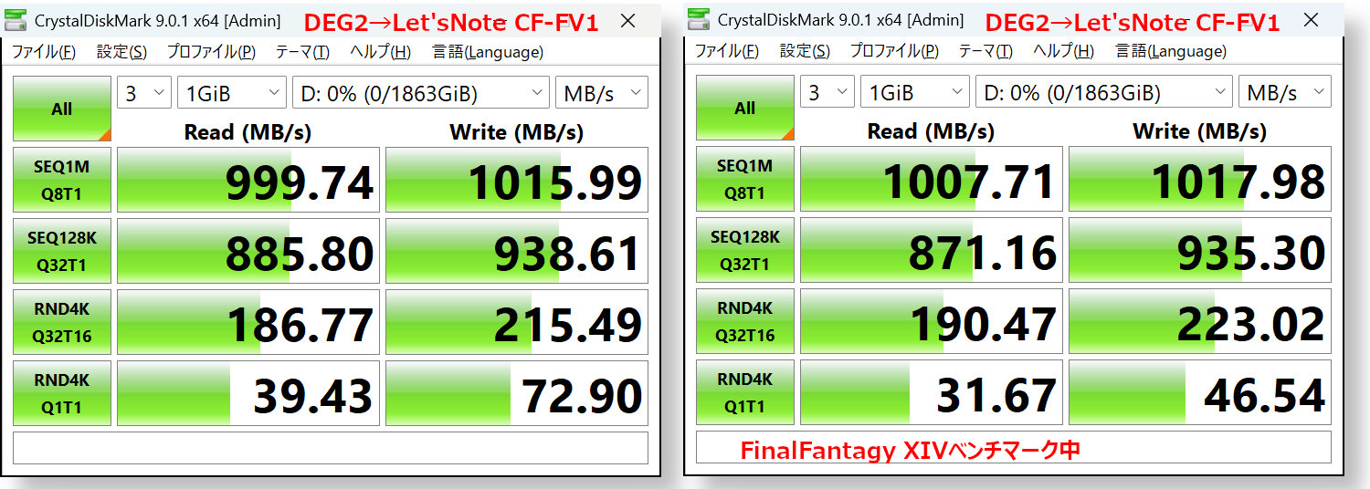 PCは、Let'sNote CF-FV1を使用しました。DEG2とは、Thunderbolt4(最大40Gbps)接続になります。
