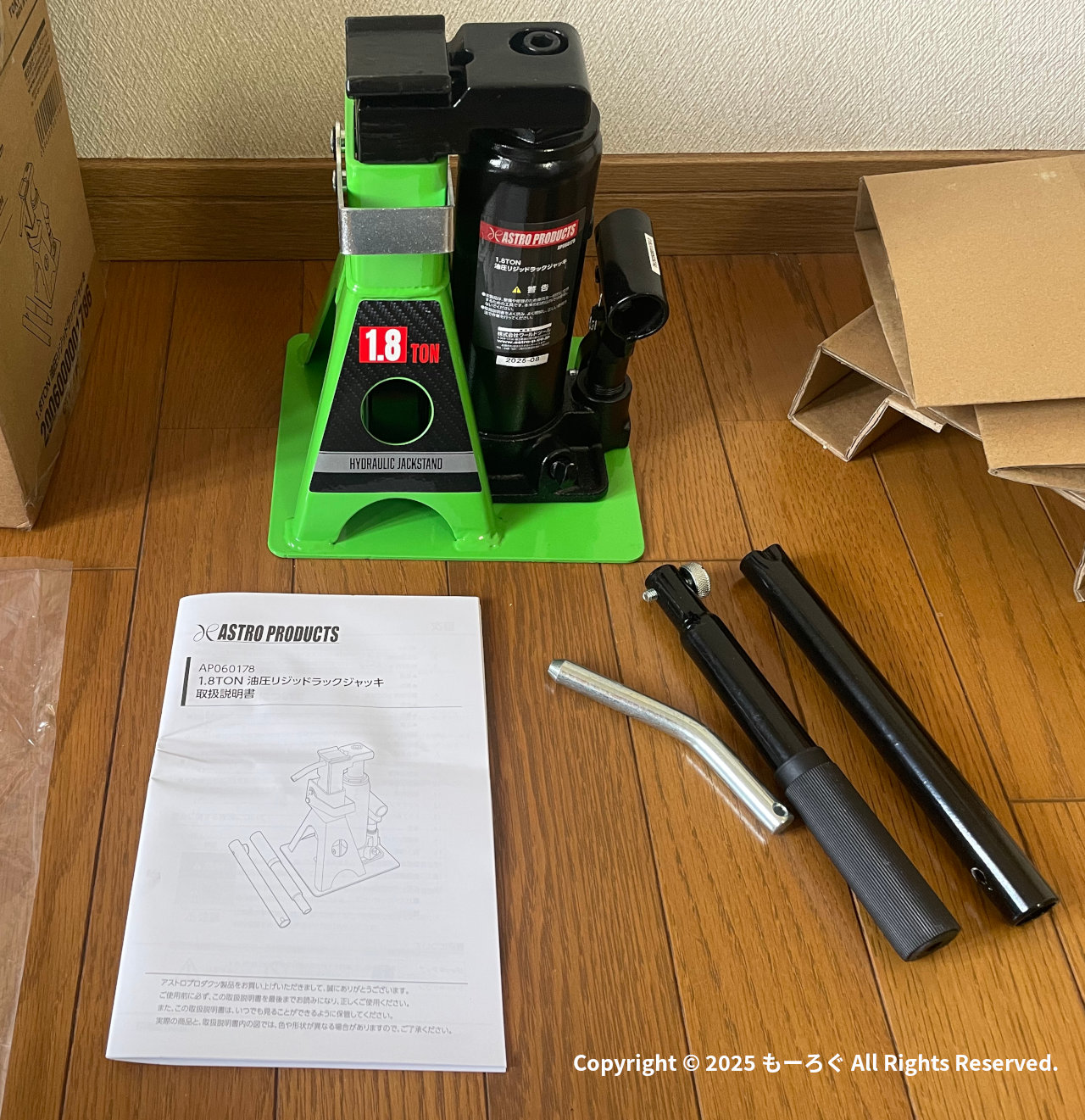 より安全に早く作業するために、ASTRO PRODUCTSの油圧リジッドラックジャッキを購入しました。
